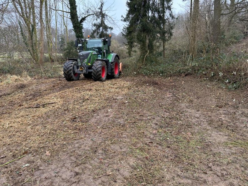 Mulcharbeiten Zerkleinerung von Gehölzen, Wildwuchs und Bodendeckern mittels leistungsstarker Forstmulcher – ideal zur schnellen Räumung großer Flächen.