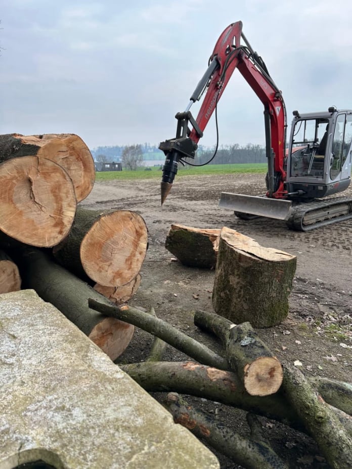 Wurzelentfernung Durch die Entfernung von Wurzeln mit Roderechen und Bagger, schaffen wir Platz für Neues.