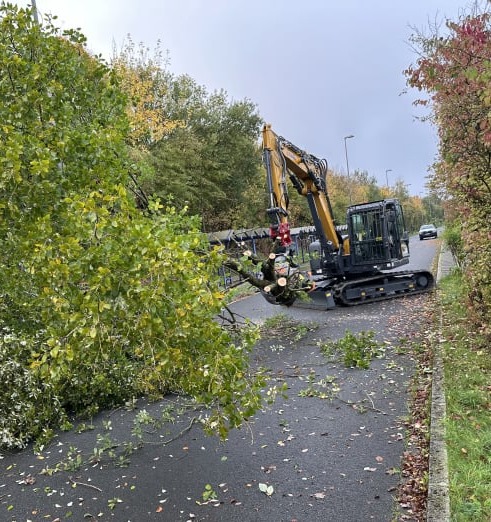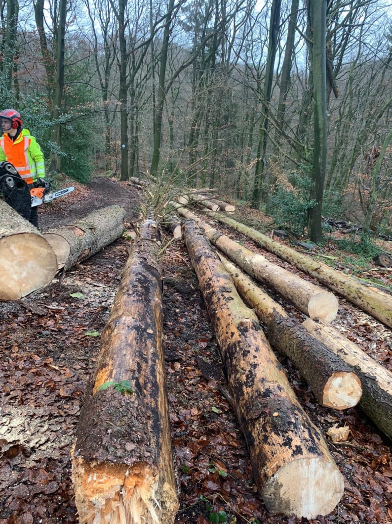 Sturmschadenbeseitigung Bei Sturm, Unwettern oder anderen Notfällen stehen wir bereit, um umgestürzte Bäume zu entfernen oder beschädigte Bäume zu sichern, um die Sicherheit der Menschen und des Eigentums zu gewährleisten.